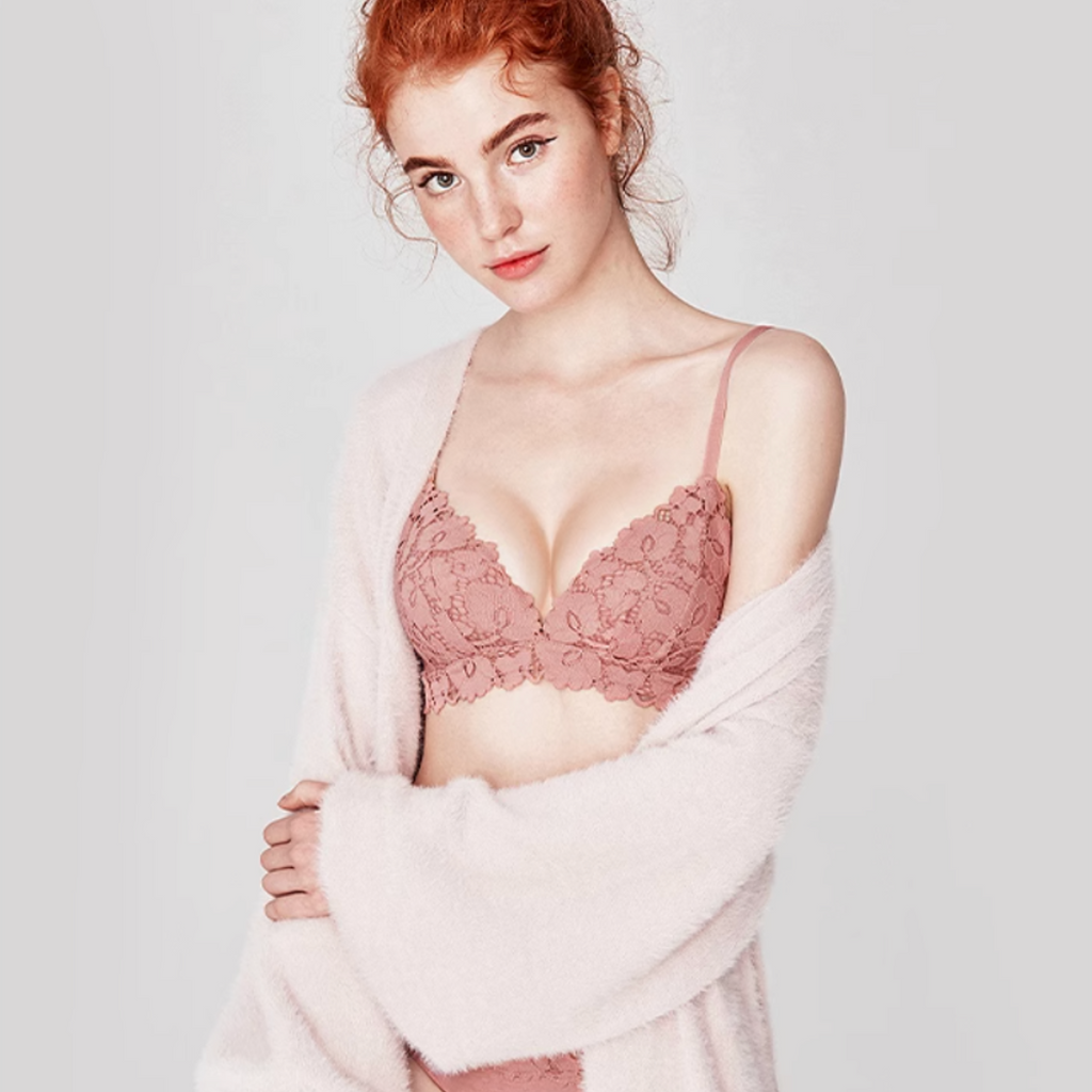 繊細なレースが咲き誇るフェミニンなブラ。